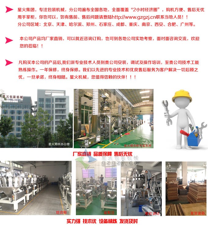 該全自動(dòng)薯片薯?xiàng)l包裝機(jī)為星火研制的多頭組合稱包裝機(jī),專業(yè)包裝薯片薯?xiàng)l、貓耳朵等膨化食品而研制,故又稱膨化食品自動(dòng)包裝機(jī)械。整機(jī)自動(dòng)化程度高,全自動(dòng)完成送料,計(jì)量,充填制袋,打印日期,產(chǎn)品輸出全部生產(chǎn)過程,十頭電腦組合秤,計(jì)量精度高、效率快,不易碎料,包裝形式多樣:背封、插角、連袋、沖孔等。 1.4230全自動(dòng)包裝機(jī) 2.十頭電腦組合秤 3.Z型物料輸送機(jī) 4.振動(dòng)送料機(jī) 5.支撐平臺(tái) 6.成品輸送機(jī) ![]() 1、采用雙伺服電機(jī)控制,拉膜更準(zhǔn)確,速度更快。 3、橫、縱封溫度獨(dú)立控制,能良好的適用各種復(fù)合膜、PE膜等包裝材料。 4、精度高、噪音小。 產(chǎn)品直達(dá)車