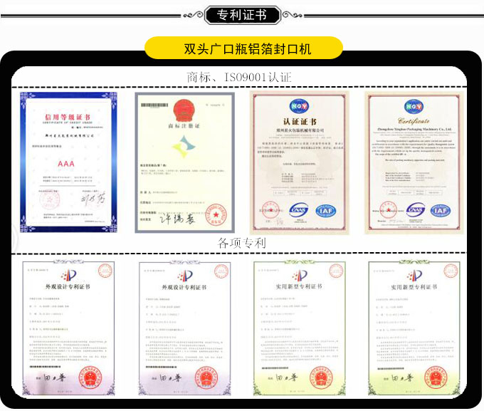 全自動(dòng)雙頭廣口瓶封口機(jī)集機(jī)、電、氣于一體,設(shè)計(jì)科學(xué)合理;該機(jī)主要由機(jī)架,供膜裝置,收膜裝置,熱封切頭,瓶子自動(dòng)定位裝置,電、氣控制箱及輸送系統(tǒng)組成。具有自動(dòng)進(jìn)瓶出瓶、自動(dòng)恒溫、自動(dòng)供膜切膜和收膜的功能;采用熱復(fù)合工作原理,封口膜的供、收膜全程由減速電機(jī)及齒輪付驅(qū)動(dòng),結(jié)構(gòu)簡(jiǎn)單,運(yùn)行穩(wěn)定。