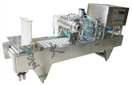 具有自動(dòng)落杯、灌裝、消菌、光電跟蹤、封口(蓋)、自動(dòng)對(duì)芯剪切、廢膜回收等功能。